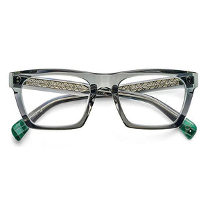 Le montature sono realizzate in acetato di qualità superiore, proveniente da cellulosa naturale di cotone e legno, garantendo leggerezza, resistenza e flessibilità. Il design gioca su linee moderne e dettagli sofisticati, con combinazioni di colori che spaziano da tonalità classiche a varianti più audaci, pensate per valorizzare la personalità di chi le indossa.